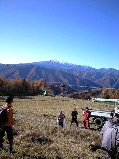 トラックの荷台などに分乗し、スキー場中腹あたりの現場までぐいぐい登る。