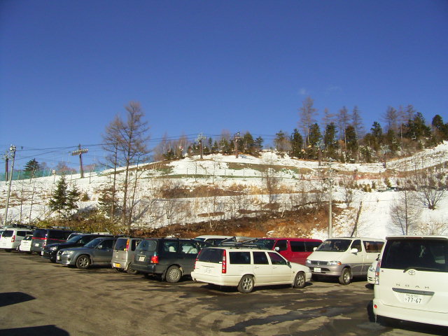 14時半の駐車場。もう少し雪が欲しいですね。