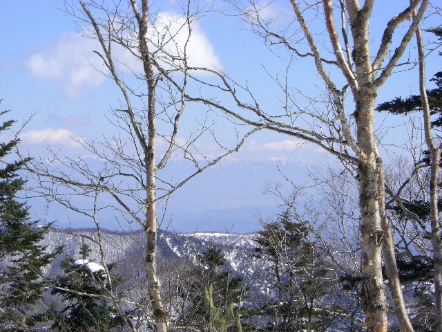 良い天気なんで、向こう側へ歩いてみました。ぼんやり見えるのは南アルプスでしょうか?
